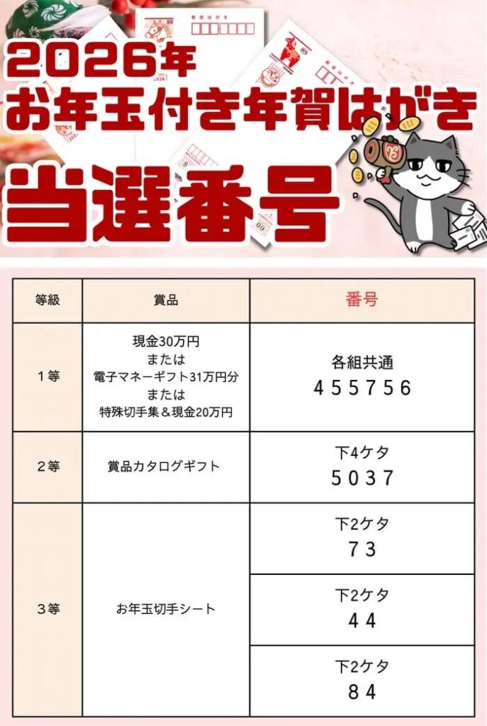 先日、今更ですがお年玉付きの年賀状の当選番号を確認しました
