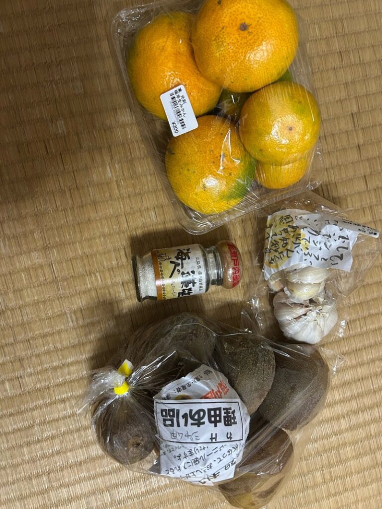 みかんにニンニクにキウイフルーツ、そして何より塩が美味しいです