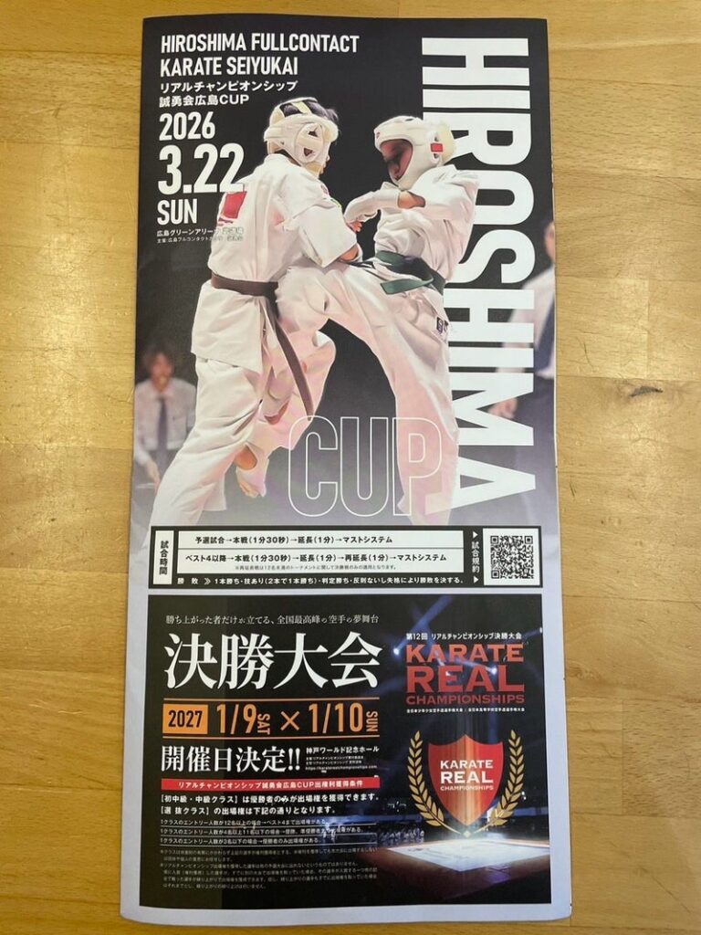 先日、広島県広島市中区ある広島グリーンアリーナで2026リアルチャンピオンシップ誠勇会広島CUP (主催:広島フルコンタクトカラテ誠勇会)が開催され、日本空手道 友絆塾から4名の選手が出場しました。